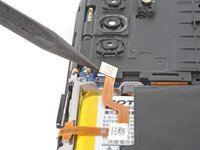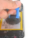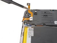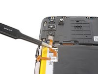 Insert an opening pick between the right edge of the battery and the frame.