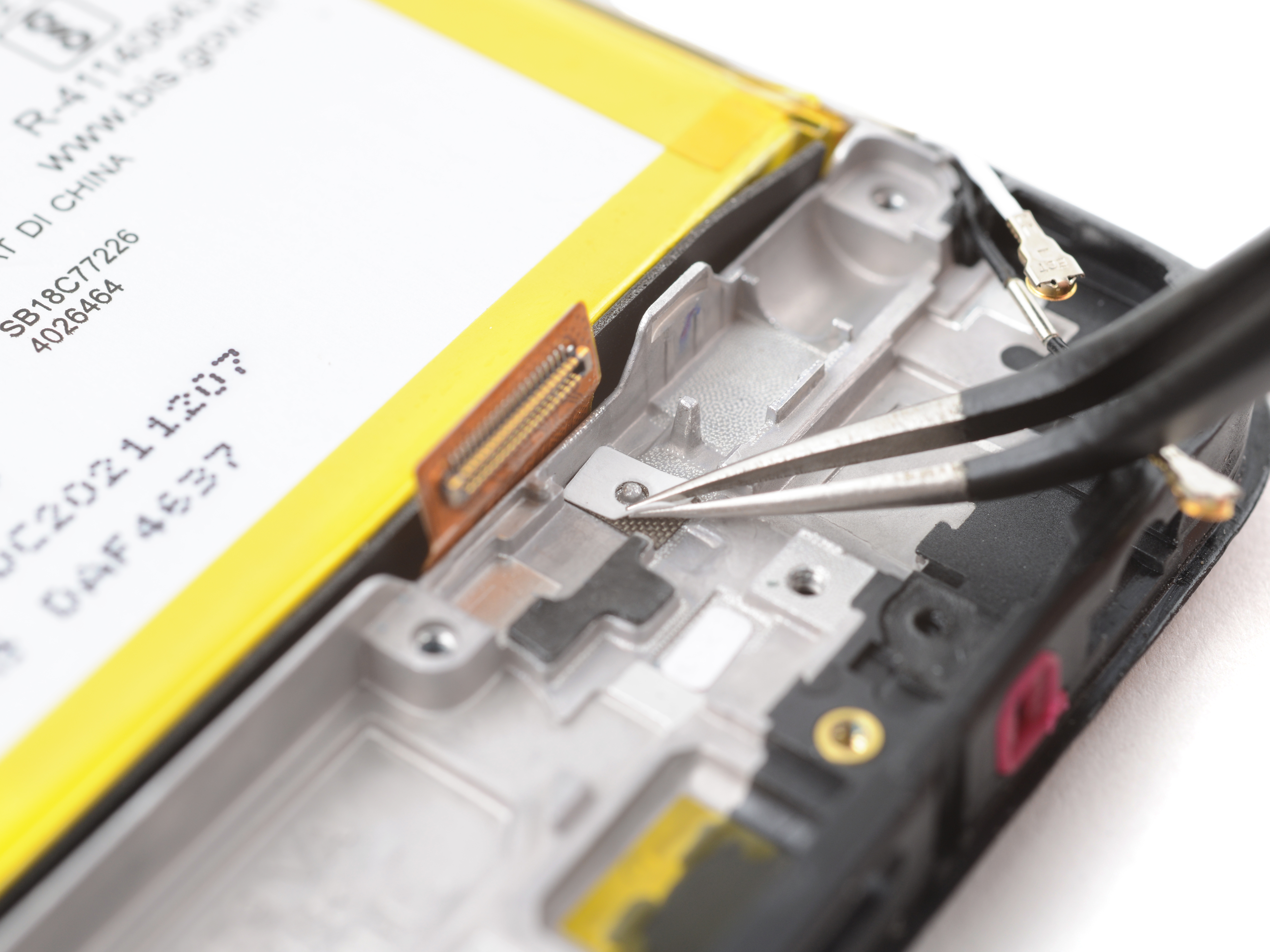 Pry and disconnect the head of the black antenna cable.