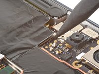 Use the pointed end of a spudger to pry up and disconnect the board cable's press connector.