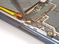 Use the pointed end of a spudger to pry up and disconnect the 5G mmWave antenna's press connector.