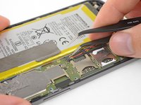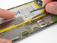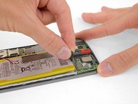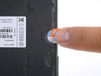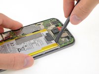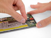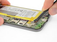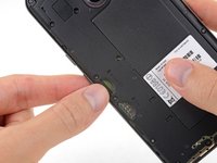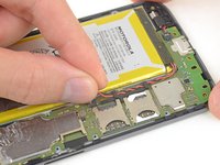 Peel up the black pull tab at the top of the battery, and pull slowly but firmly to separate the battery from the adhesive holding it in place.