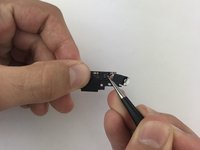 Remove the small silicon cover at the bottom right of the camera using tweezers.