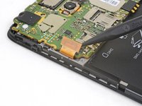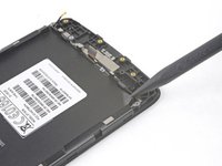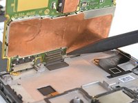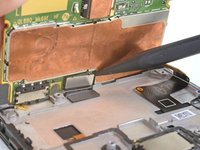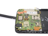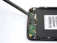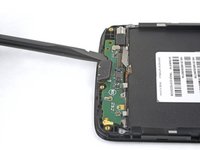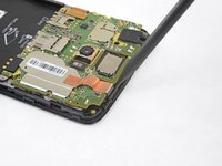 Insert the flat end of a spudger underneath the motherboard, near the top edge of the phone.