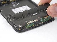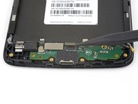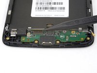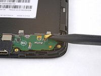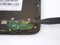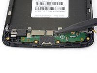 Insert the flat end of a spudger below the daughterboard, near the charging port.