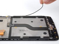 Use your fingers to lift and de-route the antenna cable from the right edge of the phone.