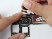 Remove the motherboard from the phone by prying it up with the plastic opening tool.