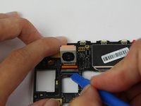Gently pry the 12-megapixel G5 Plus rear-facing camera up using the plastic opening tool, exposing the ZIF connector.