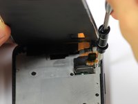 Remove the one 5mm Torx-5 screw located by the connector cables in the top right corner of the device.