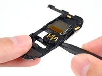 Insert a spudger under the panhandle of the headphone jack/speaker assembly and pry it up from its recess.