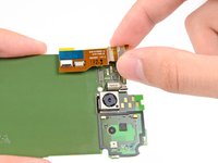 Remove the front-facing camera from its recess with a pair of tweezers.