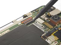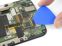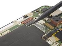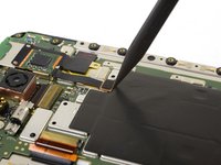 Slide an opening pick under the PCB to slice through its adhesive and separate it from the SIM card slot.