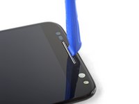 Slide the opening pick along the edge of the phone to slice through the back cover adhesive.