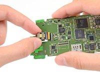 Gently lift the motherboard out of the phone, rotating it from the SIM slot edge of the phone.