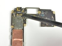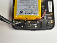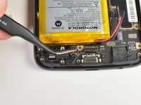 Using a pair of tweezers disconnect the vibrating motors connector near the bottom of the device.