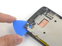 Use flat edge of the spudger to pry up the two blue connectors near the top of the device.