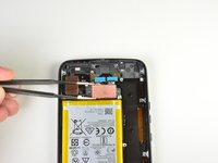 Use an opening tool to flip up the wide lock bar on the display cable's ZIF socket, near the top right of the phone.