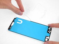 When it's correctly aligned, lower the rest of the adhesive sheet into the phone.