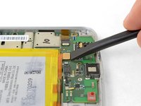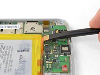 At the opposite end of the phone, use your spudger to flip open the locking tab on the display cable connector.