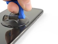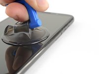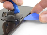 Pull up on the suction cup with firm, constant pressure to create a slight gap between the display and rear case.