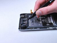 Use tweezers to remove the speaker from the top left of the phone by pulling upward.