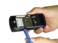 Slip the plastic opening tool carefully between the camera and the plastic casing.