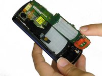 Use a plastic opening tool to gently pry the motherboard up until you can tilt it with your fingers. Unhook it from the casing and slowly pull it out.