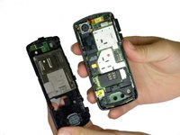 Press the panel release button on the top of the phone and simultaneously pull the rear panel away from the phone.