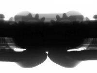 • In X-ray closeups of the hinge area, you can see the continuous geared hinge as well as the springs embedded in each side of the frame.
