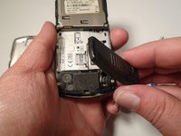 Pull the battery cover down and away from the latch; then lift it up to remove the battery cover.