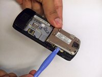 Remove the metal cover by inserting the flat end of the iFixit Opening Tool under the side of the cover, prying it away from the phone.