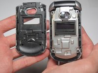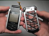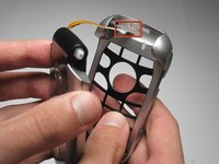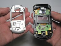 Remove the ribbon cable and the motherboard (still connected) from the frame of the phone.