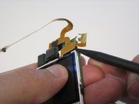 Use a plastic opening tool to peel off the gold tape that holds the flex cable in place.