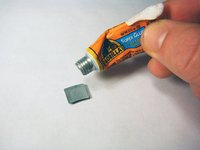Gently squeeze the bottle of super glue so that only a small amount (about 1/3 pinky width) is a applied to the back side of the key.