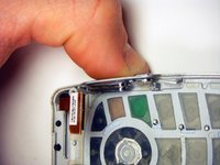 Pry off the back panel by wedging an opening tool into the crevice between the back panel and the circuit board.
