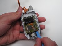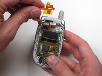 Lift the top ribbon cable, with camera attached, up and away from the rest of the phone.