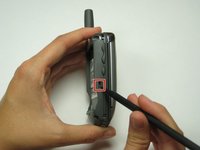 Using either a finger or a spudger, press the button located near the top of the phone by the antenna.