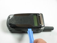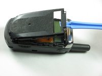 Use a opening tool to gently pry off black cover, revealing the internal LCD display.