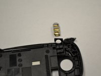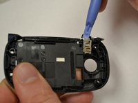 Insert thumb in the gap between the button and the battery and pry the battery upwards.
