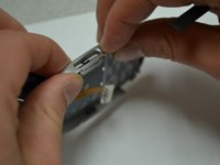 • Insert the plastic opening tool between the front and back panels of the lower half of the device.