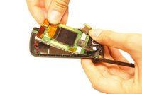 Use a flathead screwdriver or plastic opening tools to help pry the top cover away from the phone.