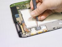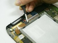 Use the tweezers to pull up one end of the small piece of tape that is holding the touchscreen controller.