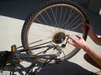 Pull the chain slack and remove the tire.