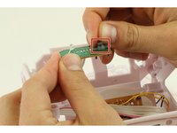 Flip the frame over so that green motherboard over so that the LED is face down and the brown side of the motherboard is face up using the Jimmy to remove the glue connecting the motherboard to the white frame.