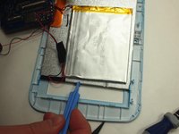 Use the wide plastic opening tool to slowly pry each side of the battery up.