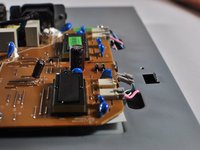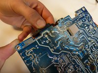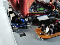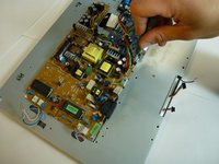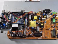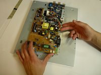 Lift the brown power supply board off of the frame and set it aside.