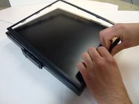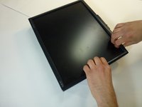 Begin opening the enclosure by slowing pulling up on back panel of the monitor.