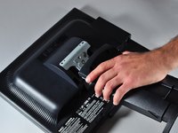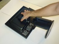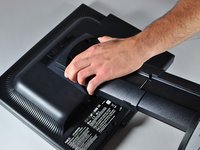 Firmly remove the back panel of the stand by pulling it up and away from the monitor.