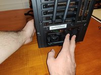 • Remove the side panel by unscrewing the captive thumb screws keeping it in place. There will be one towards the top of the panel and another towards the bottom.