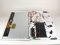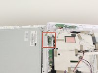 Locate the white port that connects the back panel to the circuit board on the back of the display.
