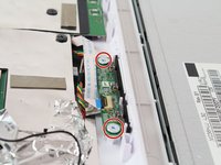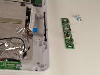 Remove the 2 silver 4.5 mm screws holding the power button assembly in place using the Phillips #1 screwdriver.